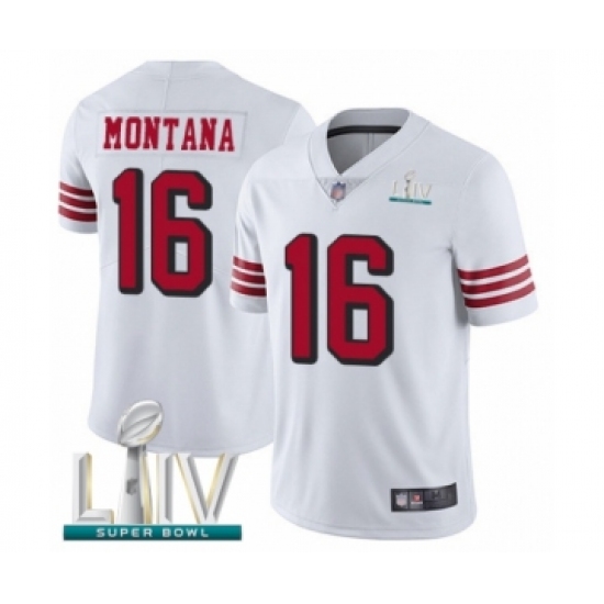 >Men's San Francisco 49ers #16 Joe Montana Limited White Rush Vapor Untouchable Super Bowl LIV Bound Football Jersey