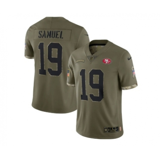 >Men's San Francisco 49ers #19 Deebo Samuel 2022 Olive Salute To Service Limited Stitched Jersey