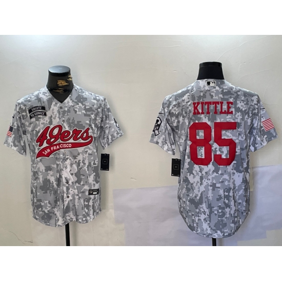 >Men's San Francisco 49ers #85 George Kittle Arctic Camo 2024 Salute to Service Stitched Baseball Jersey