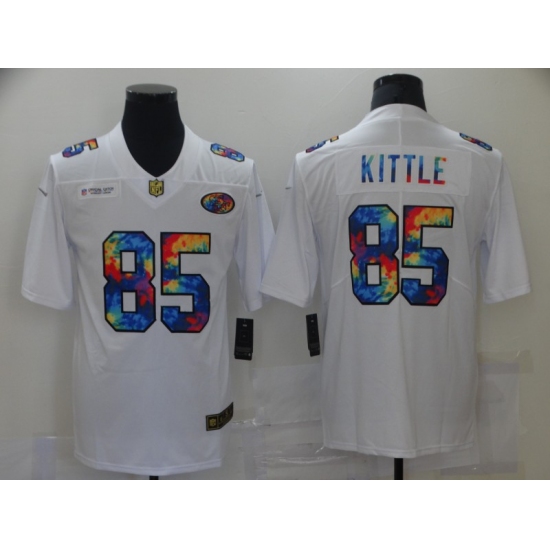 >Men's San Francisco 49ers #85 George Kittle White Rainbow Version Nike Limited Jersey