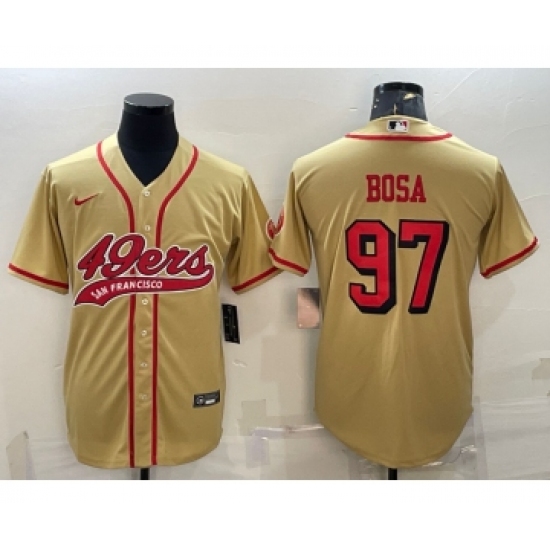 Men's San Francisco 49ers #97 Nick Bosa Gold Color Rush With Patch Cool Base Stitched Baseball Jersey