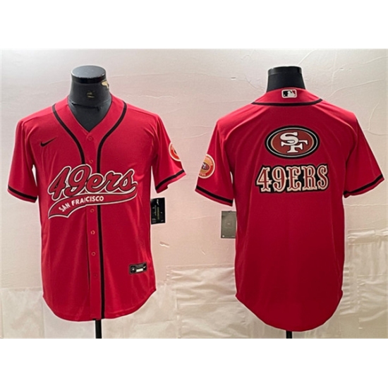 Men's San Francisco 49ers Red Team Big Logo With Cool Base Stitched Baseball Jersey