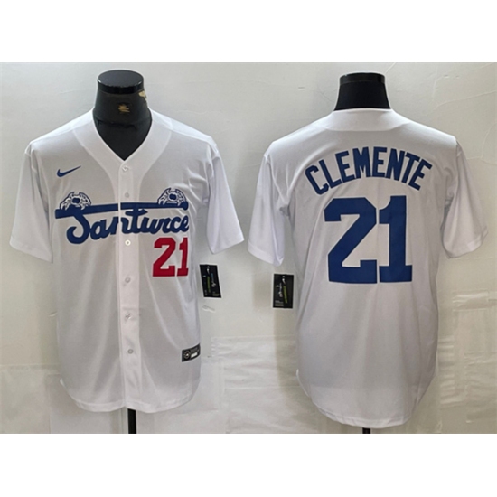 Men's Santurce Crabbers #21 Roberto Clemente White Cool Base Stitched Baseball Jersey