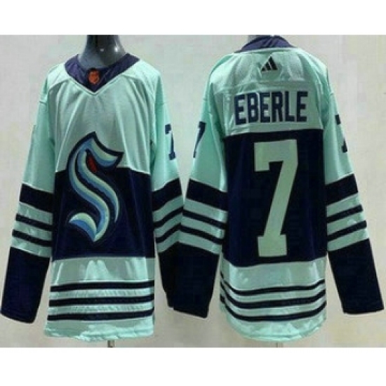 >Men's Seattle Kraken #7 Jordan Eberle Light Green 2022 Reverse Retro Authentic Jersey