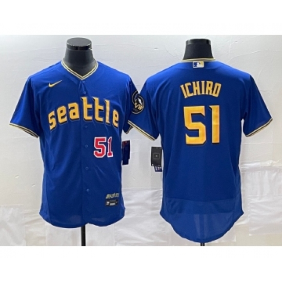 Men's Seattle Mariners #51 Ichiro Suzuki Number Blue 2023 City Connect Flex Base Stitched Jersey
