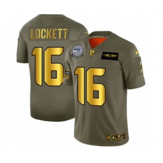 >Men's Seattle Seahawks #16 Tyler Lockett Limited Olive Gold 2019 Salute to Service Football Jersey