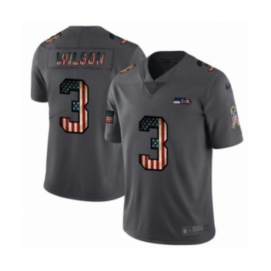 Men's Seattle Seahawks #3 Russell Wilson Limited Black USA Flag 2019 Salute To Service Football Jersey