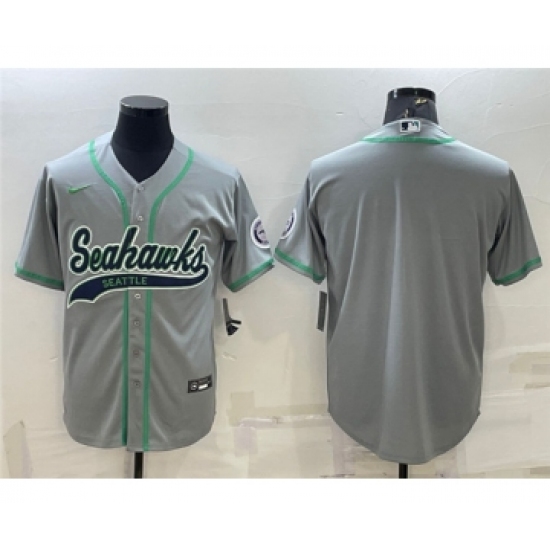Men's Seattle Seahawks Gray With Patch Cool Base Stitched Baseball Jersey