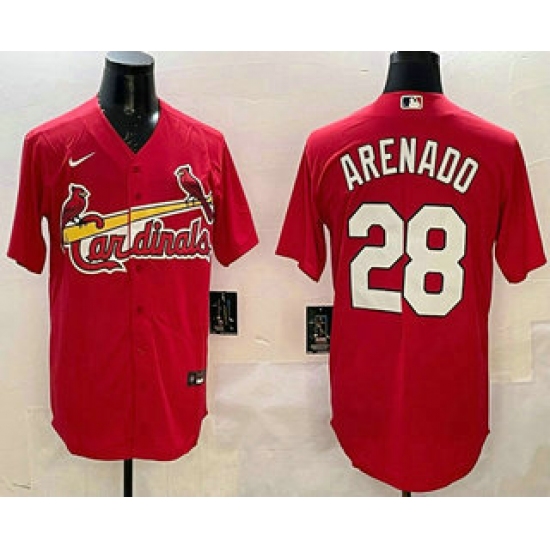 >Men's St Louis Cardinals #28 Nolan Arenado Red Stitched Cool Base Nike Jersey