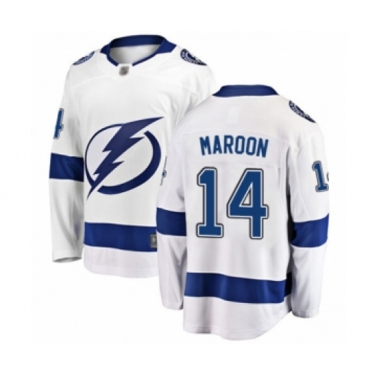 >Men's Tampa Bay Lightning #14 Patrick Maroon Fanatics Branded White Away Breakaway Hockey Jersey