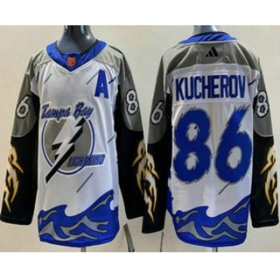 Men's Tampa Bay Lightning #86 Nikita Kucherov White 2022 Reverse Retro Authentic Jersey