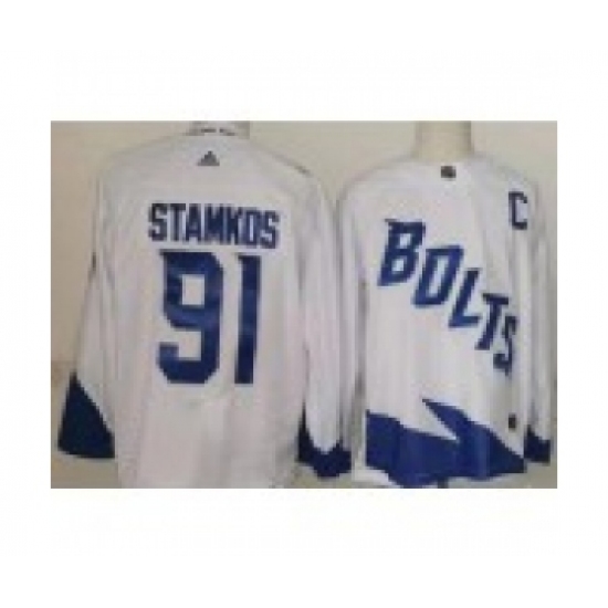 Men's Tampa Bay Lightning #91 Steven Stamkos White 2022 Reverse Retro Authentic Jersey