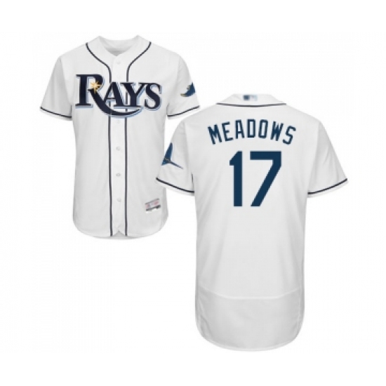 Men's Tampa Bay Rays #17 Austin Meadows Home White Home Flex Base Authentic Collection Baseball Jersey