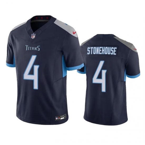 >Men's Tennessee Titans #4 Ryan Stonehouse Navy 2023 F.U.S.E. Vapor Limited Football Stitched Jersey