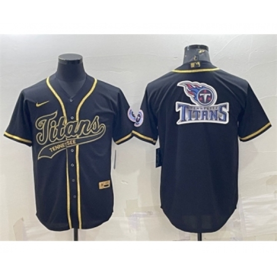 >Men's Tennessee Titans Black Gold Team Big Logo With Patch Cool Base Stitched Baseball Jersey