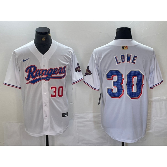 Men's Texas Rangers #30 Nathaniel Lowe Number White 2024 Gold Collection Limited Cool Base Jerseys