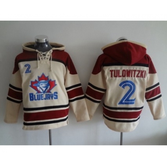 >Men's Toronto Blue Jays #2 Troy Tulowitzki Cream MLB Baseball Hoodie