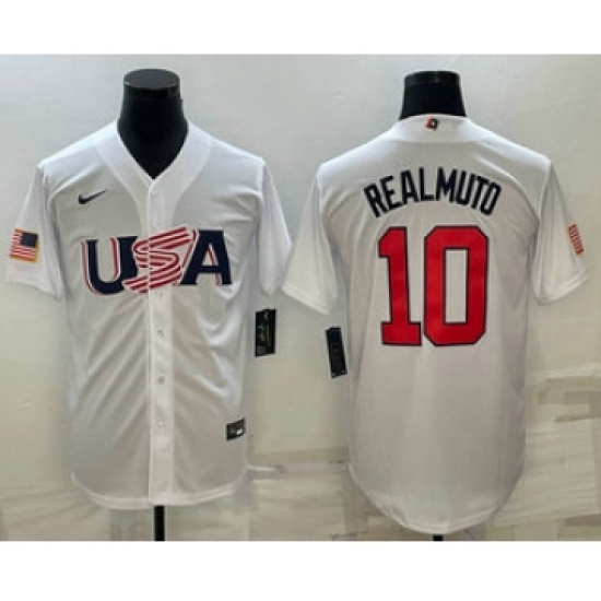 Men's USA Baseball #10 JT Realmuto 2023 White World Baseball Classic Stitched Jersey