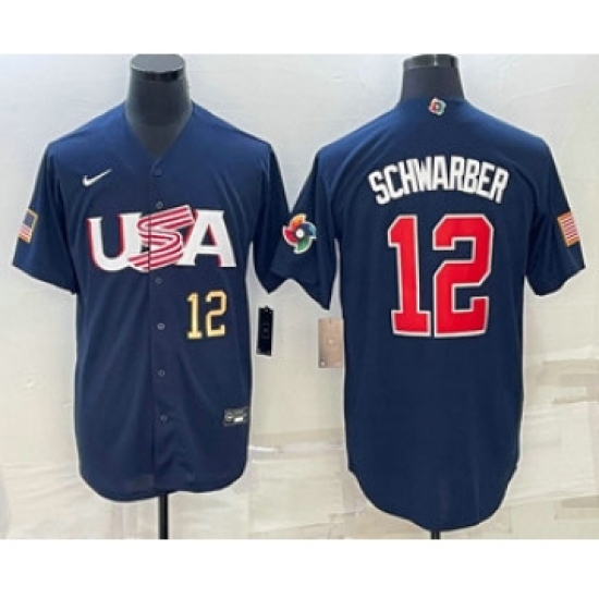 Men's USA Baseball #12 Kyle Schwarber Number 2023 Navy World Baseball Classic Stitched Jersey