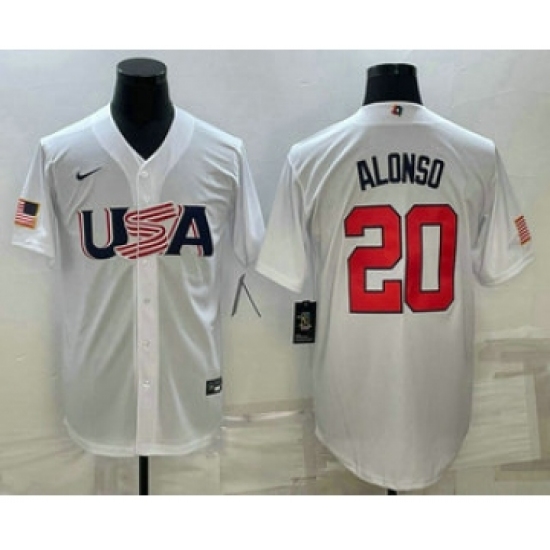 Men's USA Baseball #20 Pete Alonso 2023 White World Baseball Classic Stitched Jerseys