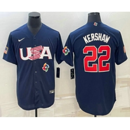 Men's USA Baseball #22 Clayton Kershaw 2023 Navy World Baseball Classic Stitched Jerseys