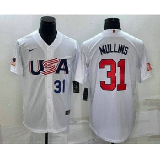 >Men's USA Baseball #31 Cedric Mullins Number 2023 White World Classic Stitched Jerseys