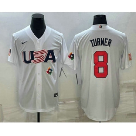 Men's USA Baseball #8 Trea Turner 2023 White World Baseball Classic Stitched Jerseys
