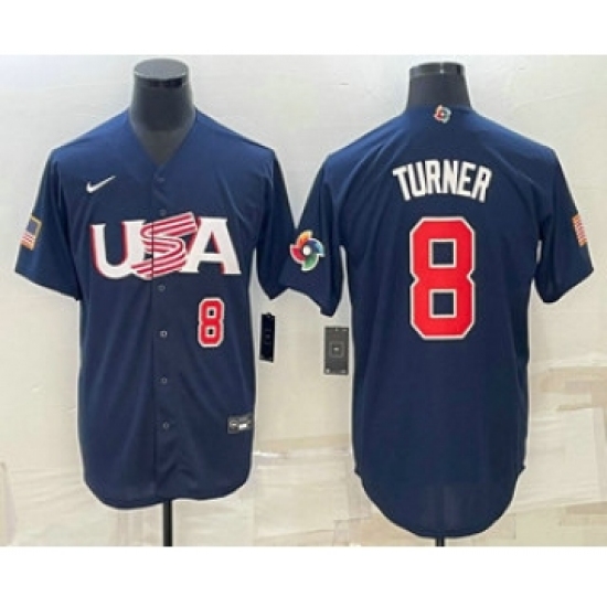 Men's USA Baseball #8 Trea Turner Number 2023 Navy World Baseball Classic Stitched Jerseys