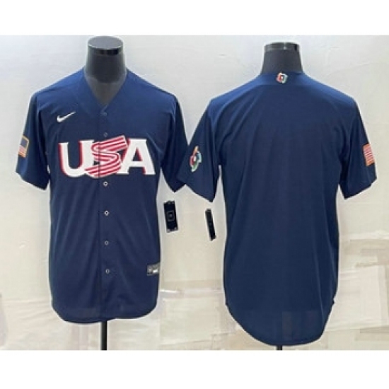 Men's USA Baseball Blank 2023 Navy World Baseball Classic Stitched Jersey