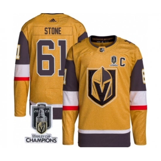 >Men's Vegas Golden Knights #61 Mark Stone Gold 2023 Stanley Cup Champions Stitched Jersey