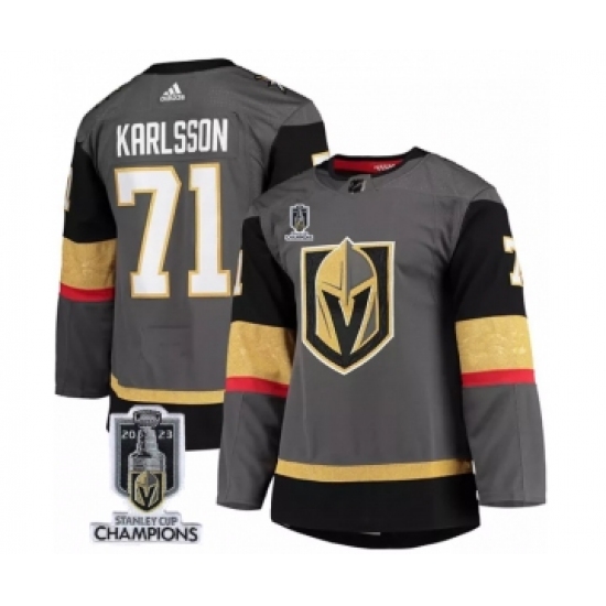 >Men's Vegas Golden Knights #71 William Karlsson Gray 2023 Stanley Cup Champions Stitched Jersey