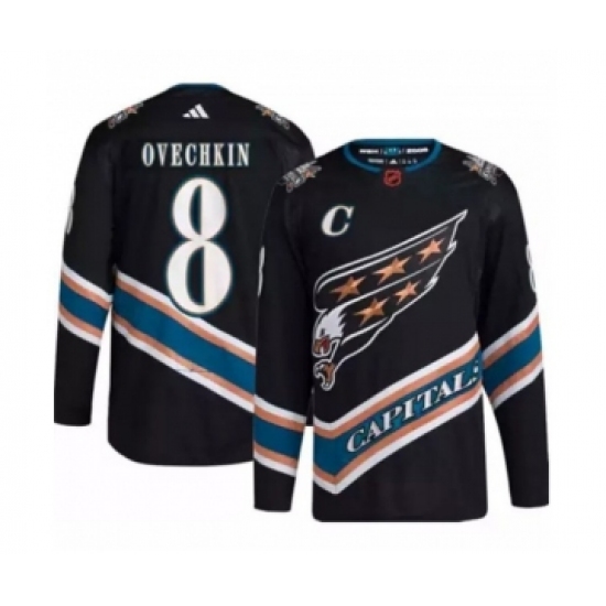 Men's Washington Capitals #8 Alex Ovechkin Black 2022-23 Reverse Retro Stitched Jersey