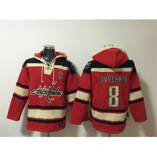 Men's Washington Capitals #8 Alex Ovechkin Red Ageless Must-Have Lace-Up Pullover Hoodie