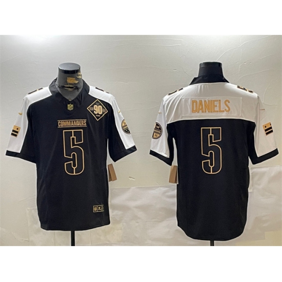 Men's Washington Commanders #5 Jayden Daniels Black Gold 2024 F.U.S.E. 90th Anniversary Vapor Limited Stitched Football Jersey