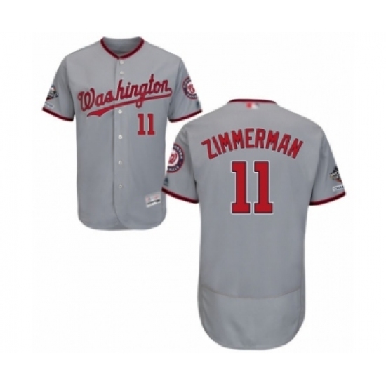 Men's Washington Nationals #11 Ryan Zimmerman Grey Road Flex Base Authentic Collection 2019 World Series Champions Baseball Jersey