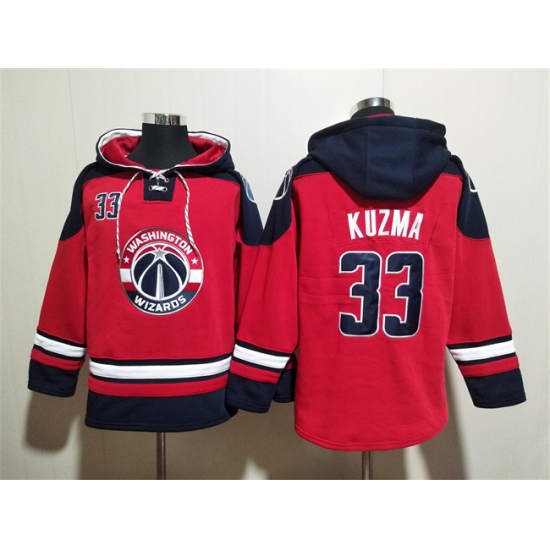 Men's Washington Wizards #33 Kyle Kuzma Red Navy Lace-Up Pullover Hoodie