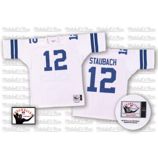 Feel like part of your favorite team by wearing this NFL® Mitchell And Ness Dallas Cowboys #12 Roger Staubach Authentic White Throwback NFL Jersey, made of thick, high-quality Pro-Brite fabric for a genuine gridiron look. The players number which 100% stitched is displayed in tackle twill on the chest, back and sleeves, along with the team name on the front. The players name which 100% stitched is displayed on a sewn-down nameplate at the back. 100% Pro-Brite nylon and 100% Pro-Brite polyester for body, 100% lycratalic spandex dazzle for Side Panels/Collar/Cuffs, NFL® Equipment patch sewn on the bottom of the front collar or fabric insert, NFL® Equipment jock tag with numeric sizing is applied to the lower left bottom of the jersey, Officially licensed.