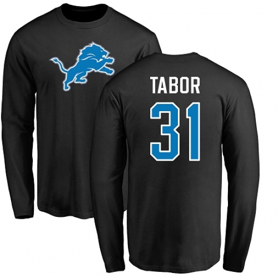 >NFL Nike Detroit Lions #31 Teez Tabor Black Name & Number Logo Long Sleeve T-Shirt