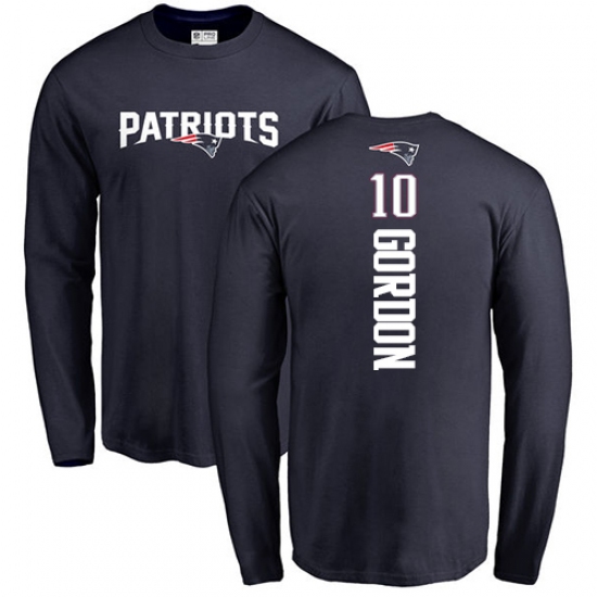 >NFL Nike New England Patriots #10 Josh Gordon Navy Blue Backer Long Sleeve T-Shirt