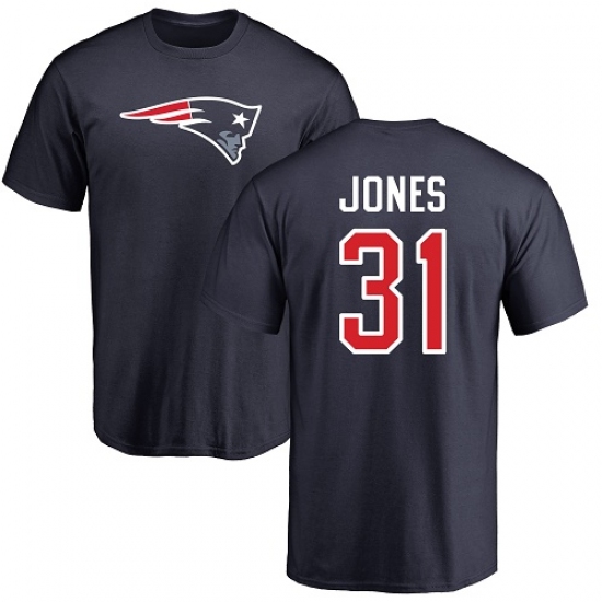 NFL Nike New England Patriots #31 Jonathan Jones Navy Blue Name & Number Logo T-Shirt