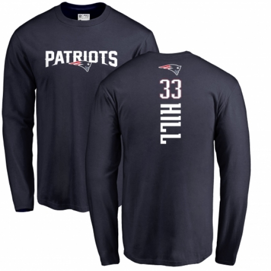 >NFL Nike New England Patriots #33 Jeremy Hill Navy Blue Backer Long Sleeve T-Shirt