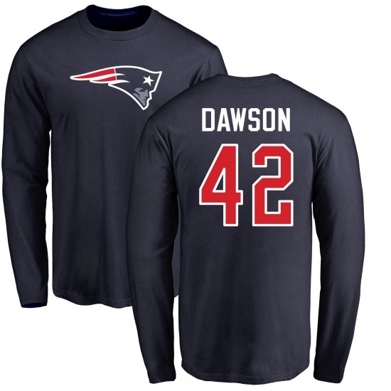 >NFL Nike New England Patriots #42 Duke Dawson Navy Blue Name & Number Logo Long Sleeve T-Shirt