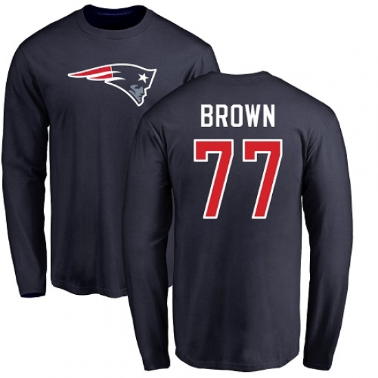 NFL Nike New England Patriots #77 Trent Brown Navy Blue Name & Number Logo Long Sleeve T-Shirt