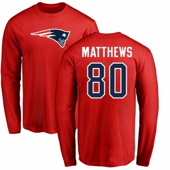 NFL Nike New England Patriots #80 Jordan Matthews Red Name & Number Logo Long Sleeve T-Shirt