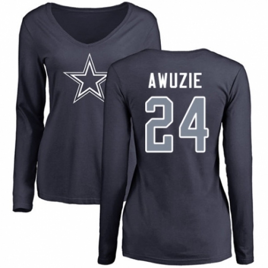 NFL Women's Nike Dallas Cowboys #24 Chidobe Awuzie Navy Blue Name & Number Logo Slim Fit Long Sleeve T-Shirt