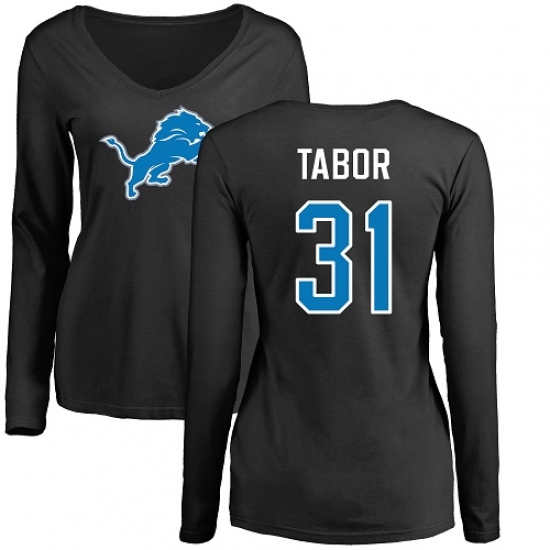 >NFL Women's Nike Detroit Lions #31 Teez Tabor Black Name & Number Logo Long Sleeve T-Shirt