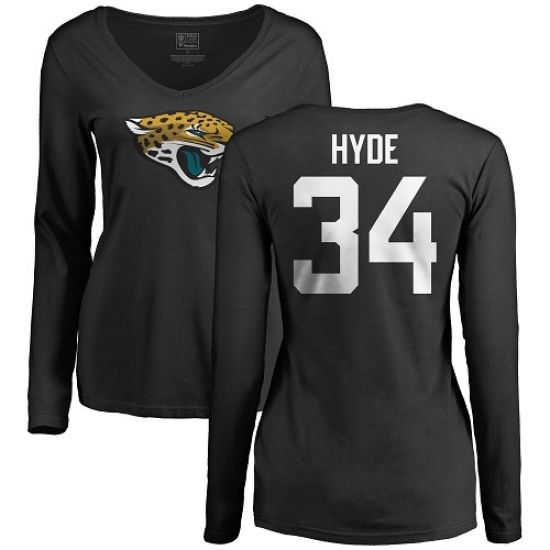 NFL Women's Nike Jacksonville Jaguars #34 Carlos Hyde Black Name & Number Logo Slim Fit Long Sleeve T-Shirt
