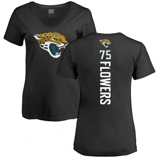 >NFL Women's Nike Jacksonville Jaguars #75 Ereck Flowers Black Backer V-Neck T-Shirt