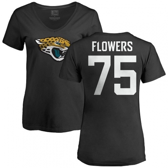 NFL Women's Nike Jacksonville Jaguars #75 Ereck Flowers Black Name & Number Logo Slim Fit T-Shirt