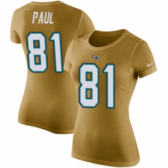 NFL Women's Nike Jacksonville Jaguars #81 Niles Paul Gold Rush Pride Name & Number T-Shirt